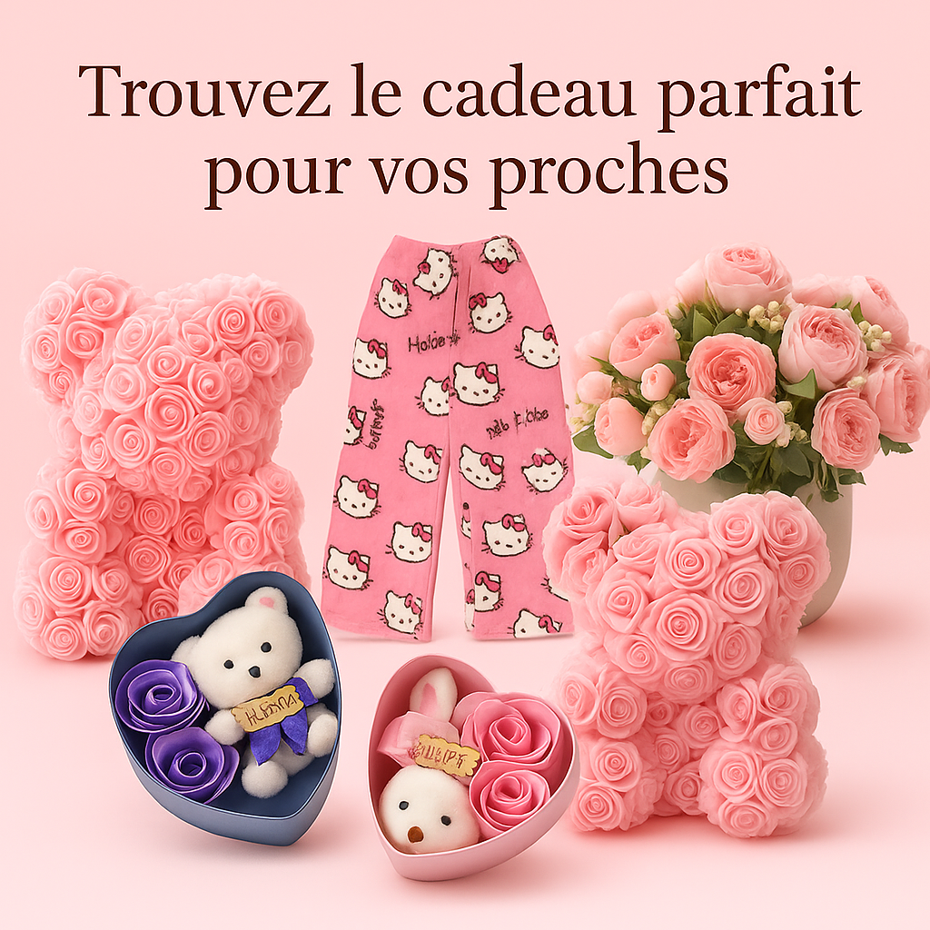 Des bouquets de roses éternelles aux peluches lumineuses, en passant par nos accessoires décoratifs et vêtements confortables, chaque article incarne notre passion du détail et notre engagement envers l’excellence.